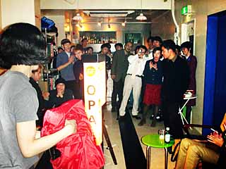 昨年、(元)マッシブ・アタックのマッシュルームの全国 DJ ツアーを成功させた Impressions のイシザキくん(左)、ハヤシくん(右)と、専属デザイナーの「謎のデザイナー X」の代理人 BABA さん。みんな肩書きがいっぱいでややこしいっちゅうねん。濃い三人組。今年の年末にもマッシュルームがやってくるというウワサがあったけど…。それは触れない約束なのか?