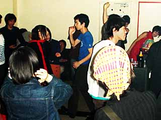 「イエイ! 2 周年めでたいぜぇ! みんな今日はガンガン踊ってくれい! ピース」と二度目の DJ バトルの始まりを告げる店主、こと DJ オガケン。GS でみんなこんなに踊るとは! と吃驚しておりました。黛ジュンの「ブラックルーム」では床が抜けるかと思うくらいお客さんを狂喜乱舞させたというモッパラのウワサ。